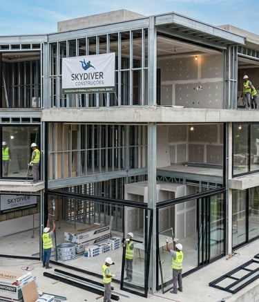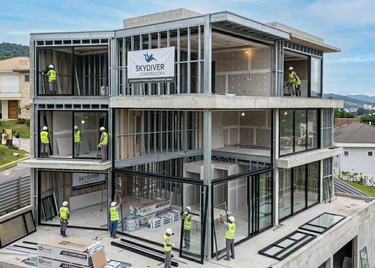 A SkyDiver Construções transformou nosso projeto com drywall e esquadrias de alumínio, superando expectativas.